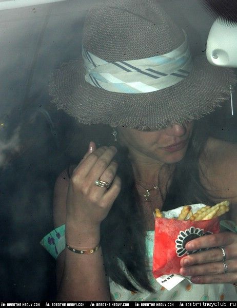 Бритни в машине ест лепешку